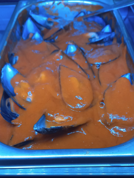 Caracolillos, mejillones con tomate, txipirones en su tinta y pintxos variados.